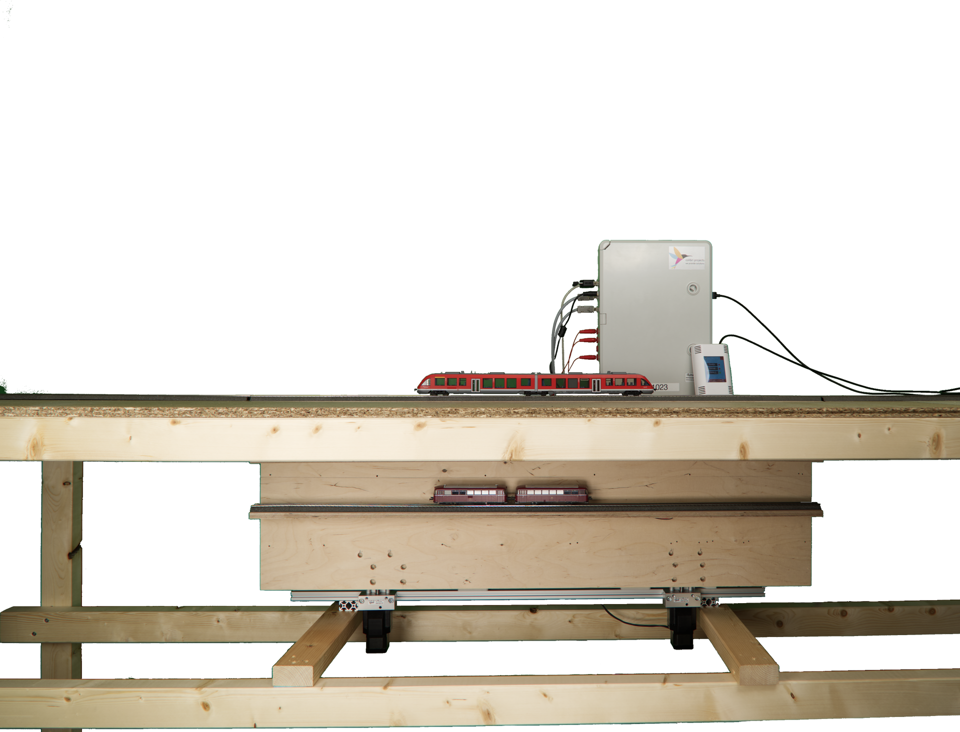 Nicht immer ist der Platz für einen Schattenbahnhof oder viele Abstellgleise gegeben. Mit diesem System die Züge aus der Modellbahnanlage durch Linearachsen mit Schrittmotorsteuerung unter dem Tisch abgestellt. Der Zugriff auf die verschiedenen Gleise erfolgt durch eine Steuerung mit Touchdisplay.